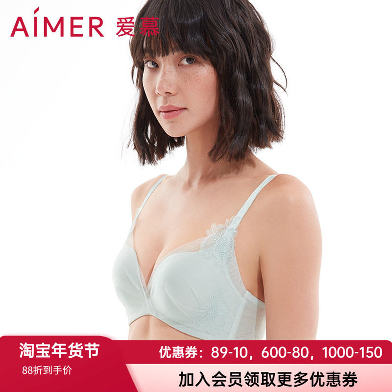 爱慕正品内衣女蜕变洞力装隐孔小胸中厚网纱聚拢文胸AM170621S