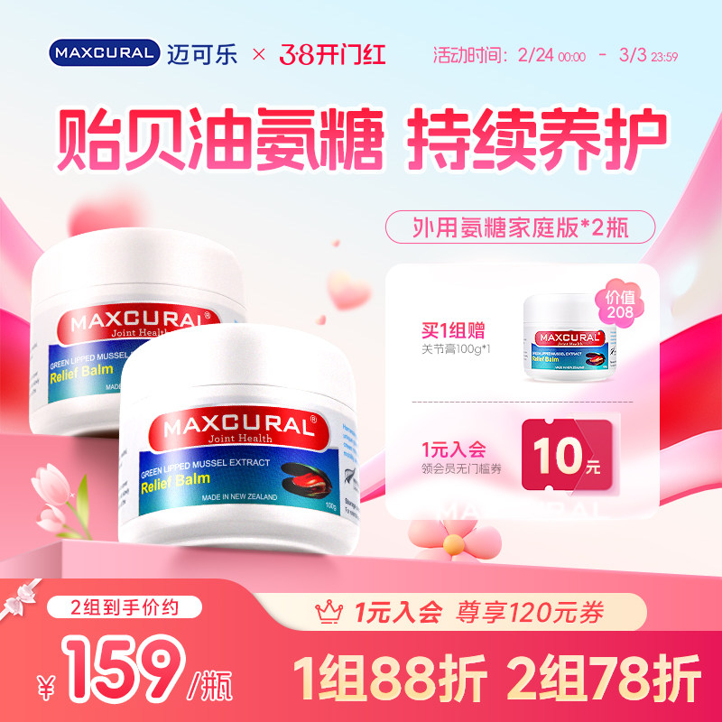 MAXCURAL迈可乐贻贝油关节膝盖涂抹膏外用氨糖软骨素临期特惠*2瓶