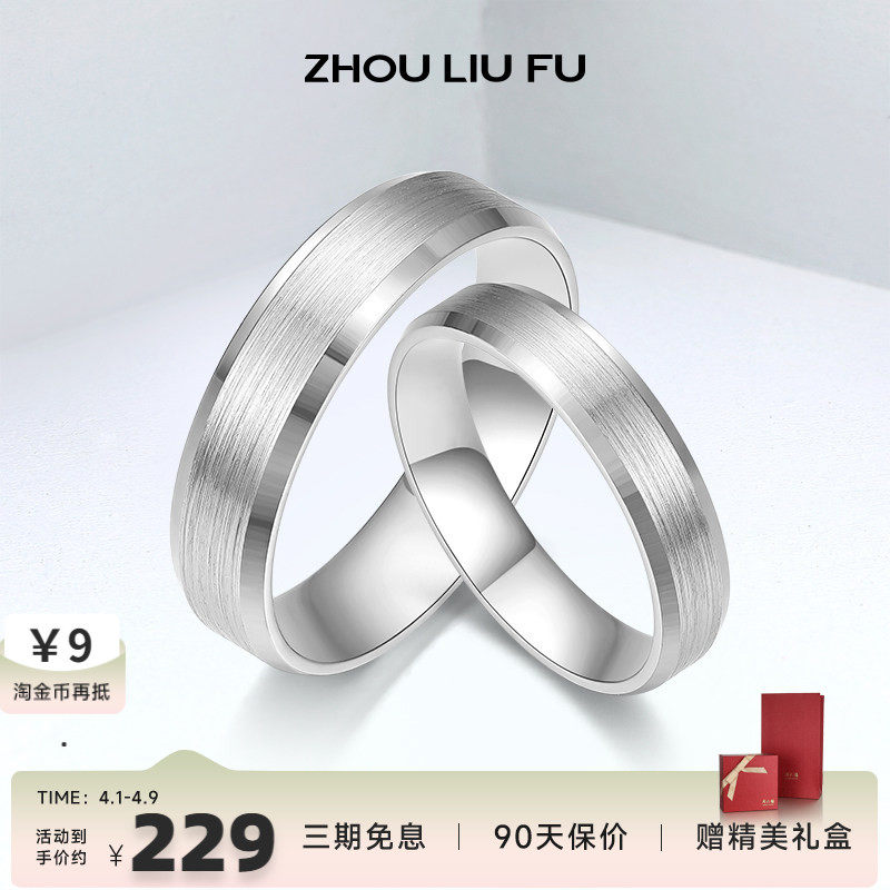周六福S925纯银情侣一对戒指男女友款简约轻奢ins潮设计素圈礼物