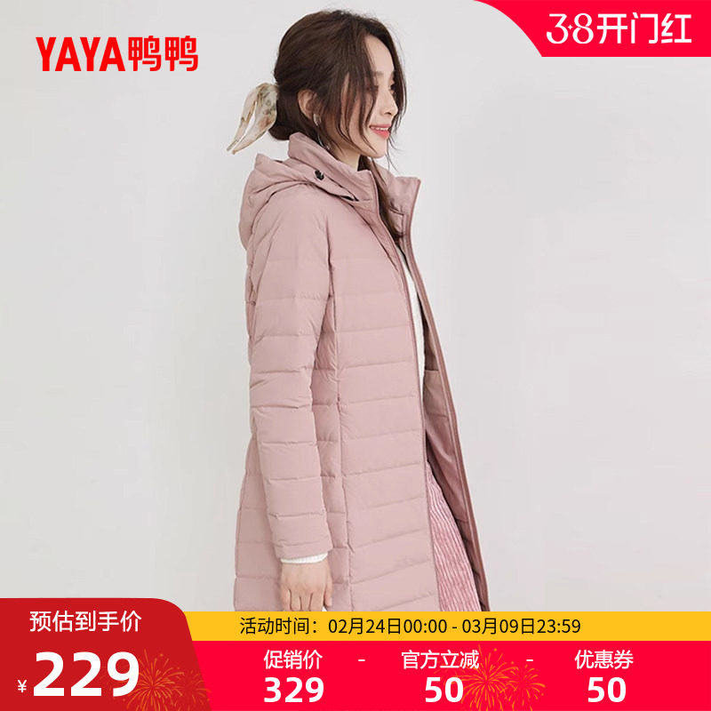 • 泡美丽»»鸭鸭轻薄款羽绒服女2025冬季新品中长款时尚轻型保暖连帽鸭绒外套