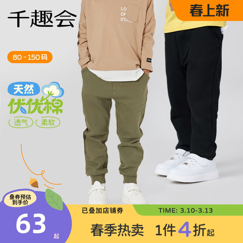 千趣会童装儿童26年春秋长裤休闲百搭男女童弹力棉宝宝舒适运动裤