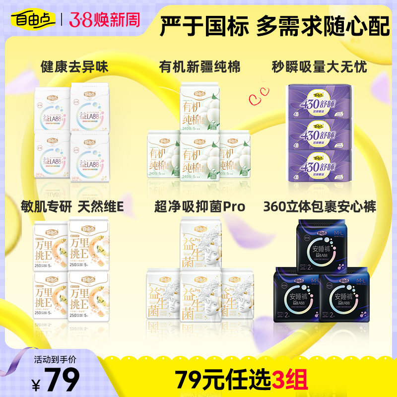 【79元任选3组】自由点益生菌卫生巾日夜用安睡裤超薄姨妈巾正品