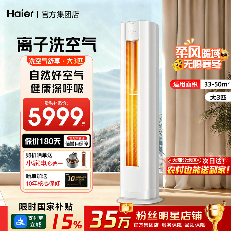 【麦浪】海尔洗空气空调家用2匹3匹一级能效变频客厅立式柜机72E3