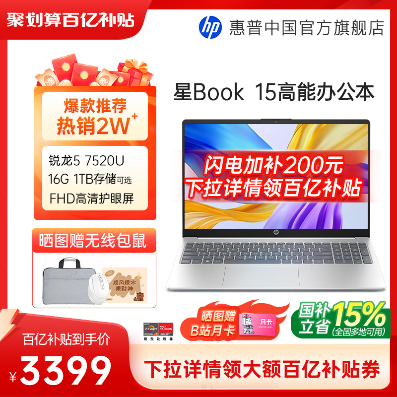 【国家补贴15%】HP/惠普可选星Book 14/15锐龙 7000系处理器笔记