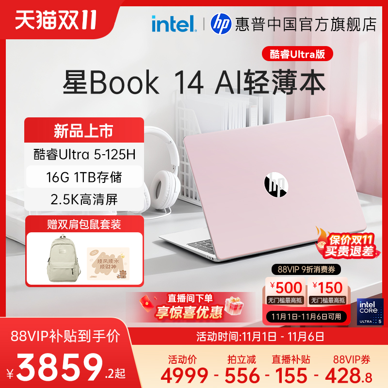 【直播间限时补贴155】HP惠普可选星Book14英特尔酷睿Ultar5/7 惠