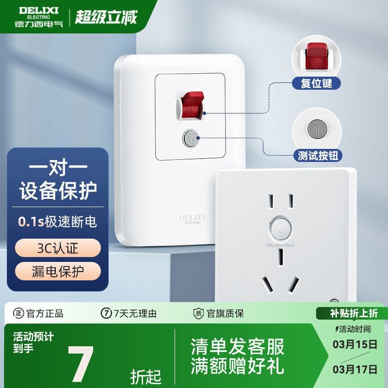 德力西开关漏电保护插座86型暗装空调16a家用32A电源漏保带开关
