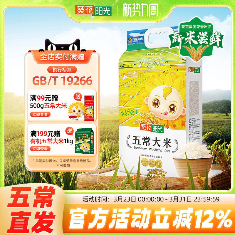• 泡美丽»»【新升级】葵花阳光官方旗舰店五常大米5kg10斤东北大米新米