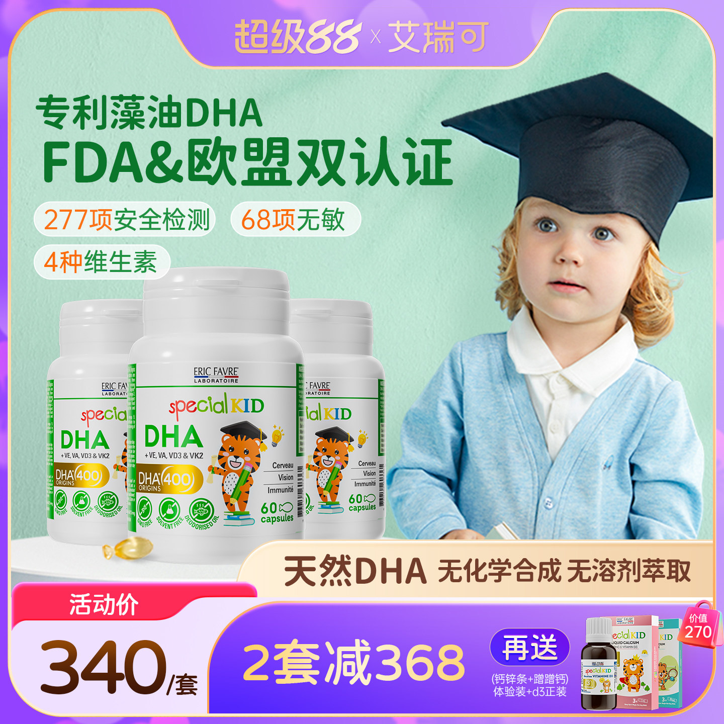 艾瑞可儿童专利DHA藻油婴儿专用宝宝婴幼儿海藻油3瓶