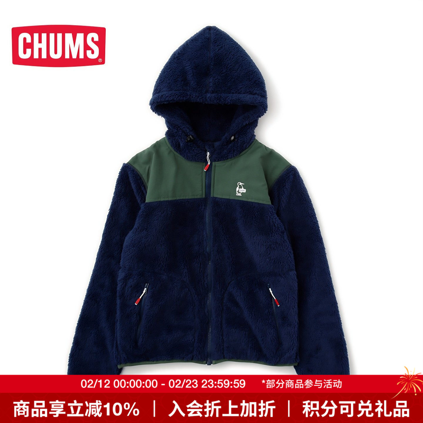 CHUMS/洽洽鸟 简约连帽时尚男女外套户外运动舒适抓绒衣CH04-1245