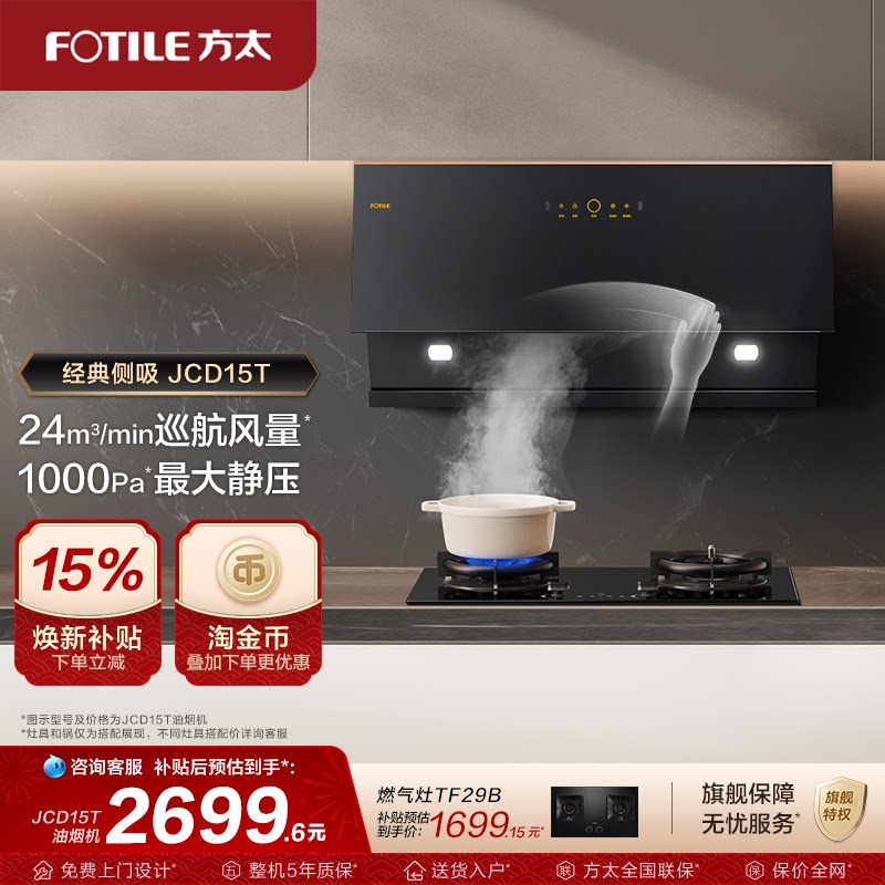 方太油烟机JCD15T家用变频侧吸油烟机排烟机抽油烟机官方旗舰店
