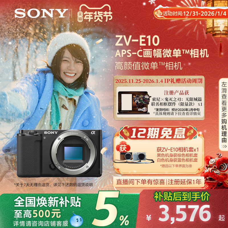 • 泡美丽»»【全国补贴】Sony/索尼ZV-E10 新升级半画幅微单e10k Vlog相机