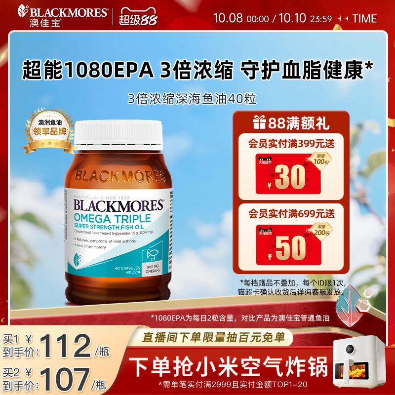 澳佳宝BLACKMORES3倍omega3高浓缩dha深海鱼油40粒官方旗舰店正