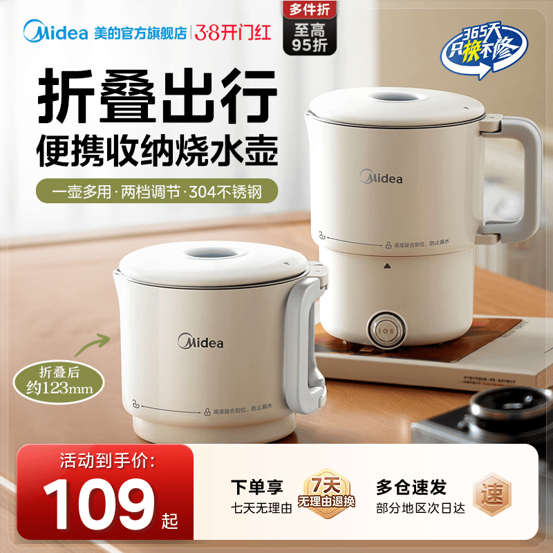 美的折叠水壶便携式小型烧水壶旅行恒温电热水壶家用保温一体新款
