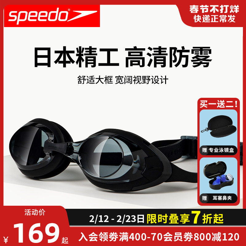 speedo进口游泳镜防水防雾高清男女大框专业游泳眼镜装备泳帽套装