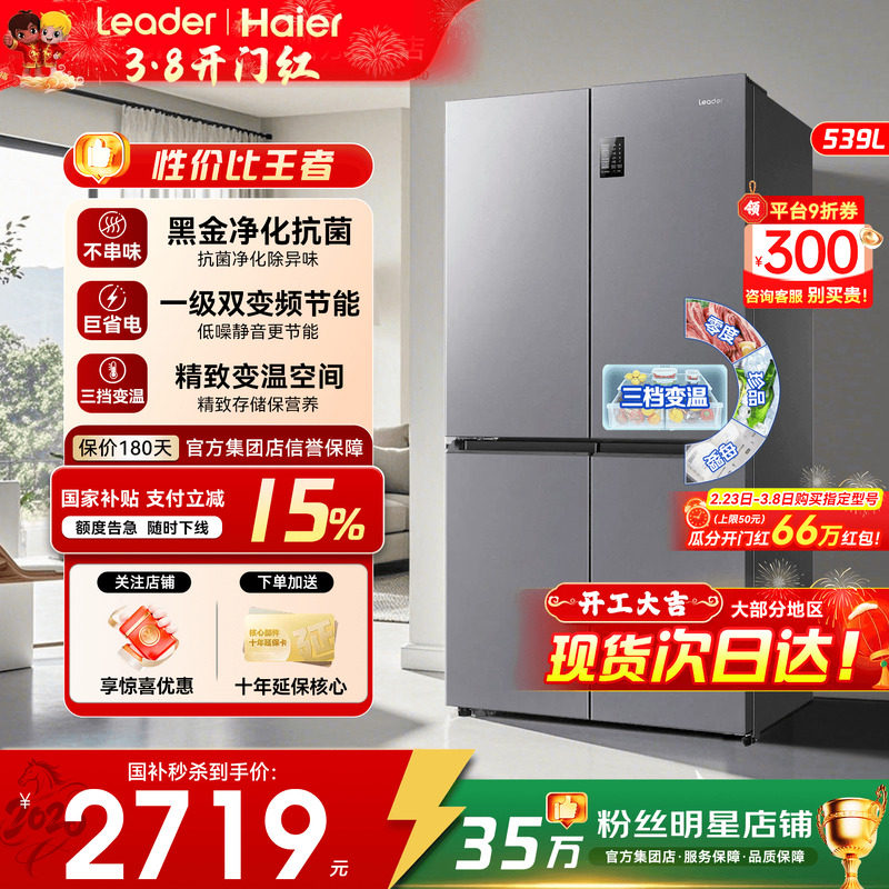 国补15%]海尔冰箱539L升超大容量统帅家用一级变频十字四门旗舰店