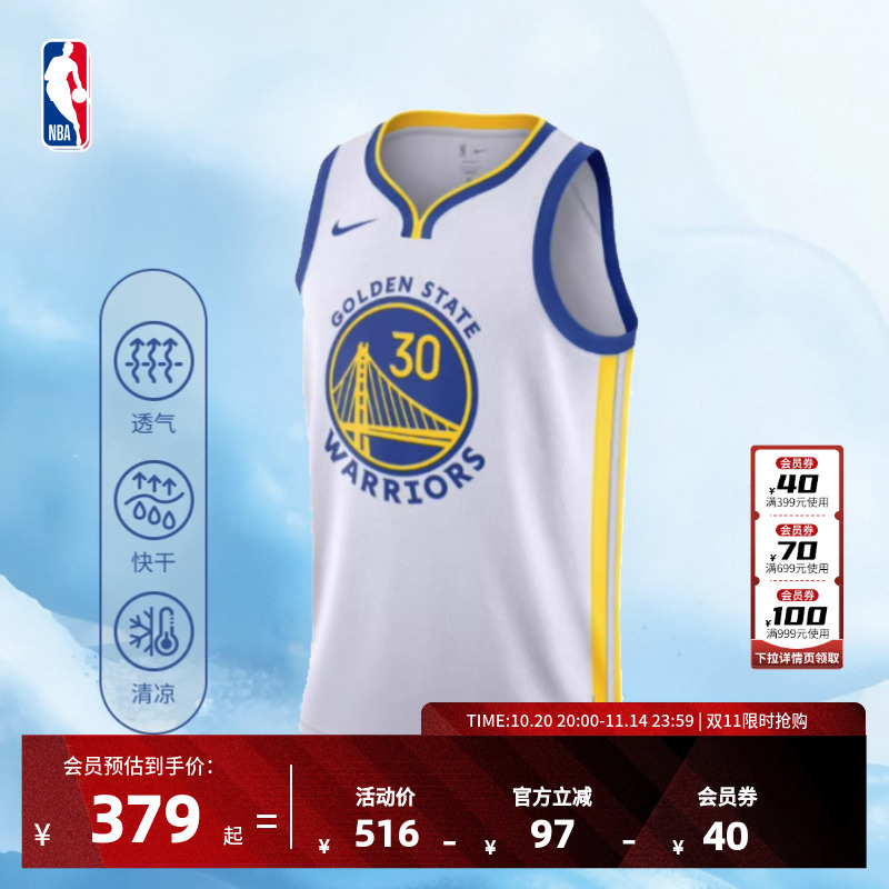 NBA官方正品Nike勇士队库里男子SW版球衣运动速干透气背心篮球服