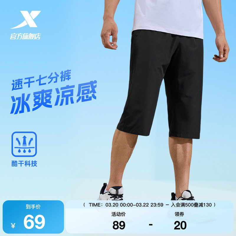 特步七分裤男裤2025夏季冰丝速干运动裤跑步健身透气凉爽运动短裤