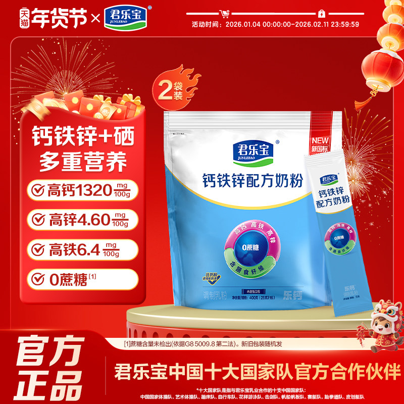 君乐宝旗舰店君乐宝钙铁锌高钙成人中老年高钙配方奶粉400g*1袋