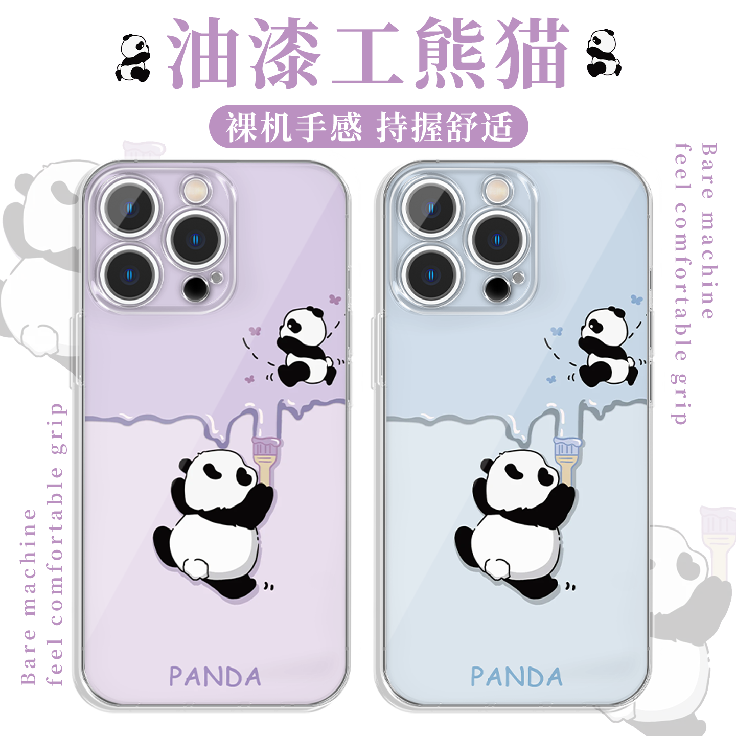 油漆工熊猫手机壳苹果16pro华为pura70紫色大熊猫iPhone15prom