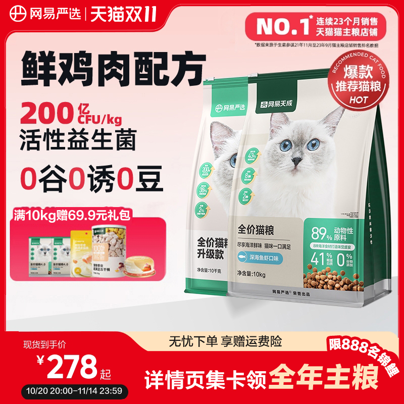 网易严选猫粮10kg20斤营养鲜肉全价幼猫成猫猫粮官方旗舰店正品