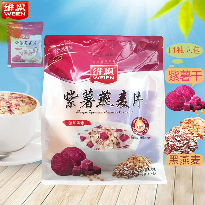 维恩520g14小包冻干紫薯黑燕麦片速溶即食早餐免煮冲饮小袋装营养