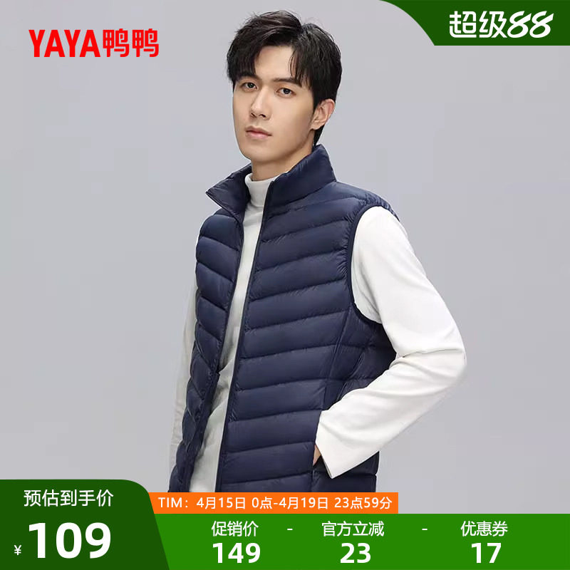 鸭鸭轻薄羽绒服马甲男2025年秋冬反季无袖修身轻型短款运动外套C