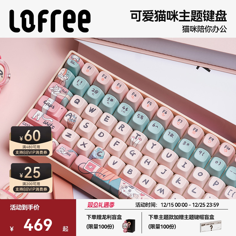 Lofree洛斐【可爱猫咪】小翘机械键盘无线蓝牙可爱女生办公红轴