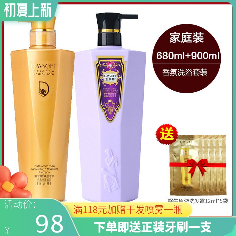 迪菲娜茶树洋甘菊控油去屑止痒洗发水沐浴露组合套装家庭装男女士