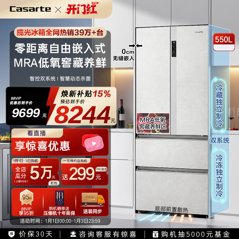 以旧换新卡萨帝原石冰箱550L零嵌法式四门一级嵌入式超薄无霜家用
