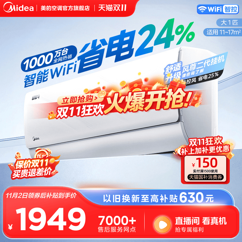 美的官方正品空调家用一级卧室大1匹变频冷暖挂机酷省电