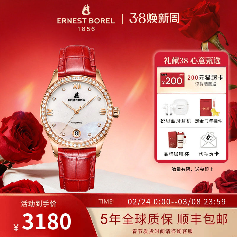 瑞士依波路手表女机械表星钻系列皮带镶钻女士手表真皮表带腕表女