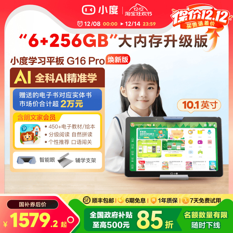 【全国补贴15%】小度智能学习平板G16 Pro 焕新升级内存AI小度学习机一年