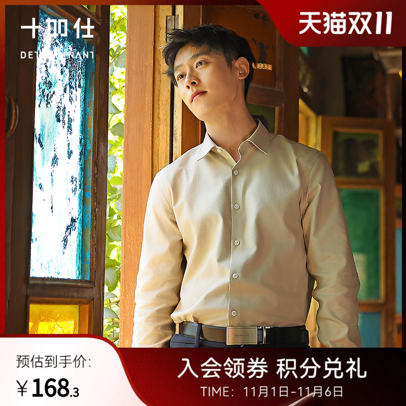 十如仕男士衬衫衣商务法兰绒免烫丝光休闲纯棉易打理长袖衬衫SS02