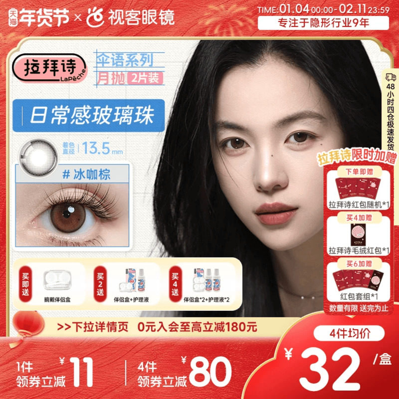 LaPeche拉拜诗伞语月抛2片三色美瞳彩色隐形眼镜大小直径夜夜生黑