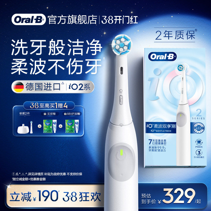 【3.8立抢】OralB欧乐B德国进口电动牙刷官方旗舰店iO2/Pro1
