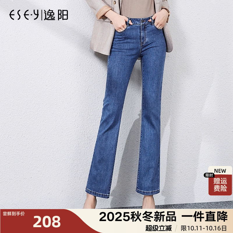 逸阳微喇牛仔裤直筒宽松2025秋新款高腰显瘦修身女士大码喇叭长裤