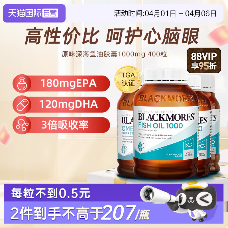 【自营】BLACKMORES澳佳宝深海dha鱼油omega3软胶囊原味欧米伽3