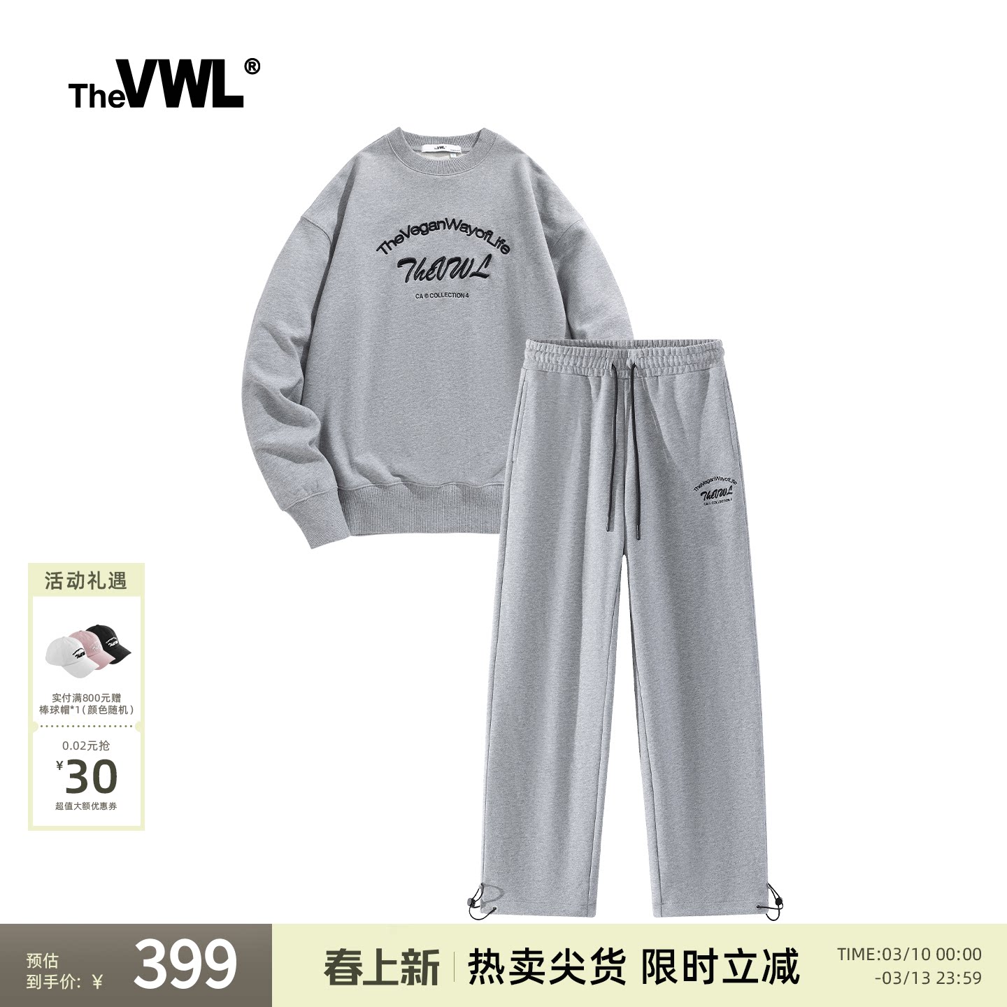 【宋威龙同款】VWL2026春季卫衣卫裤套装男女款抽绳束脚刺绣卫衣