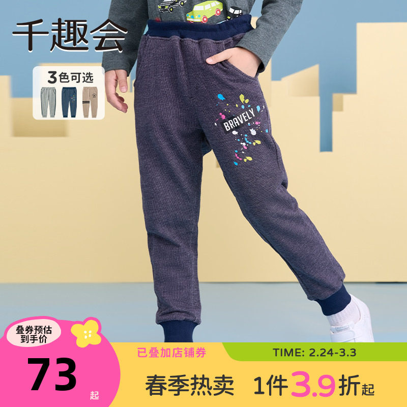 千趣会童装春秋款幼儿园宝宝裤子儿童运动纯棉男童长裤束脚裤