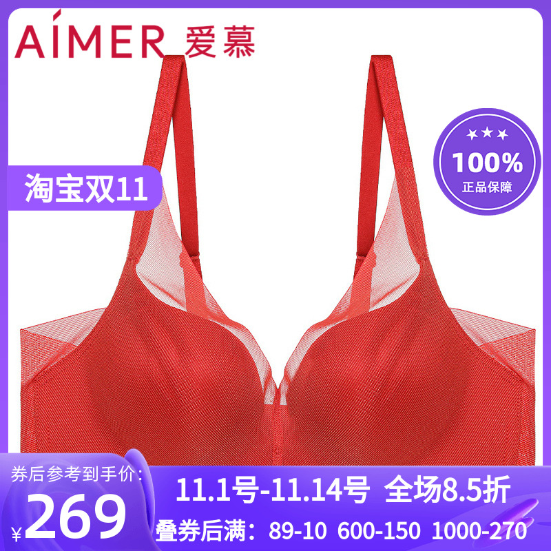 爱慕官方正品 极光 3/4无钢托中厚隐孔本命年红色文胸罩AM177191