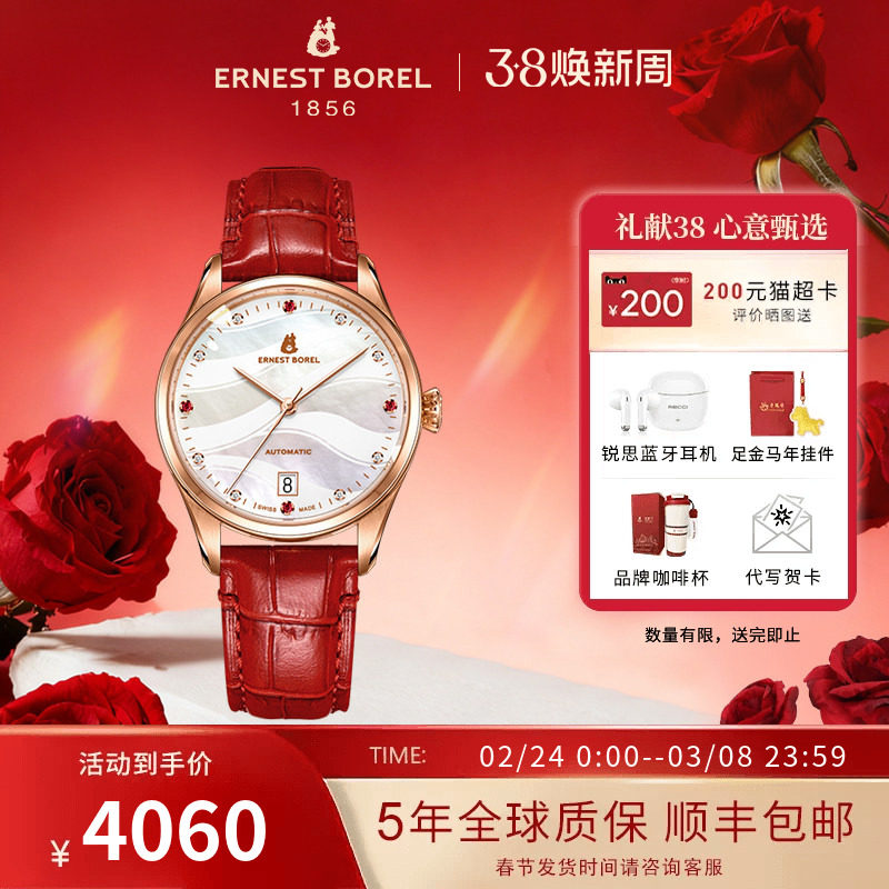 瑞士依波路手表女士皮带机械手表女自动机械机芯高级轻奢日历腕表