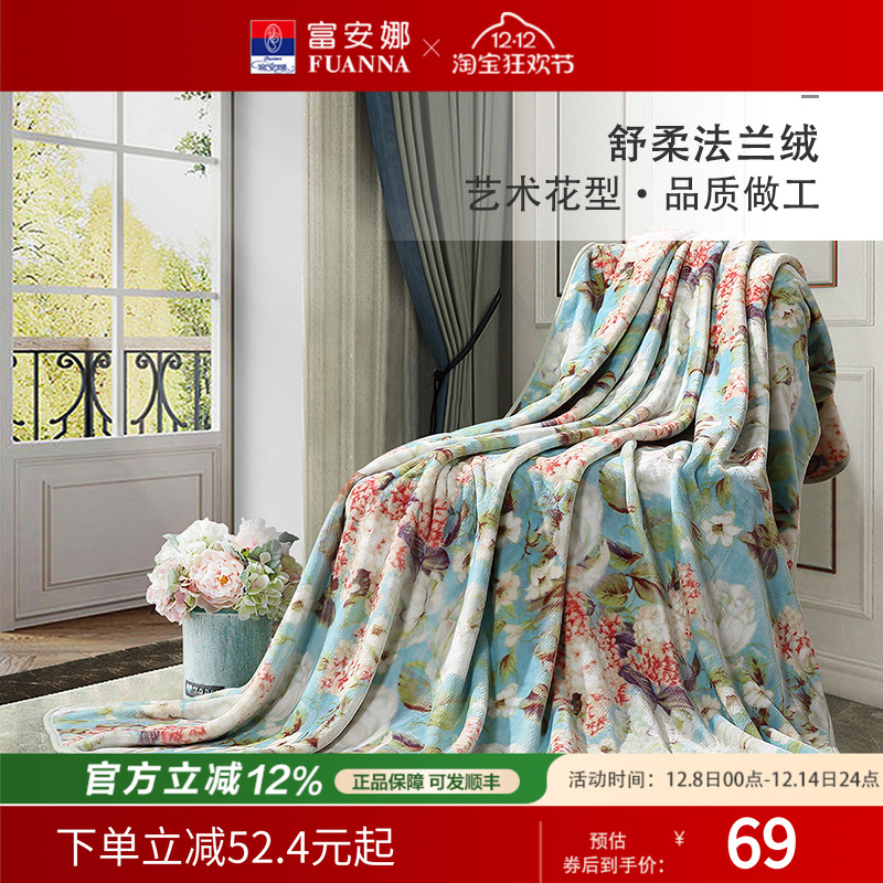 富安娜珊瑚绒法兰绒毛毯被午睡盖毯沙发毛巾盖被保暖空调毯床单