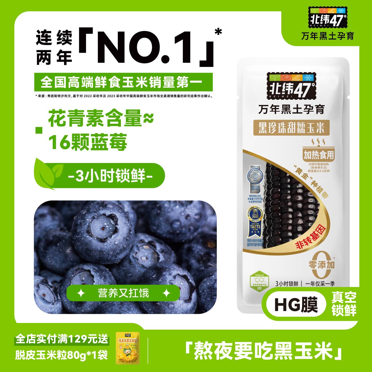 北纬47度黑糯玉米东北黑龙江花糯玉米真空包装玉米早餐新鲜玉米棒