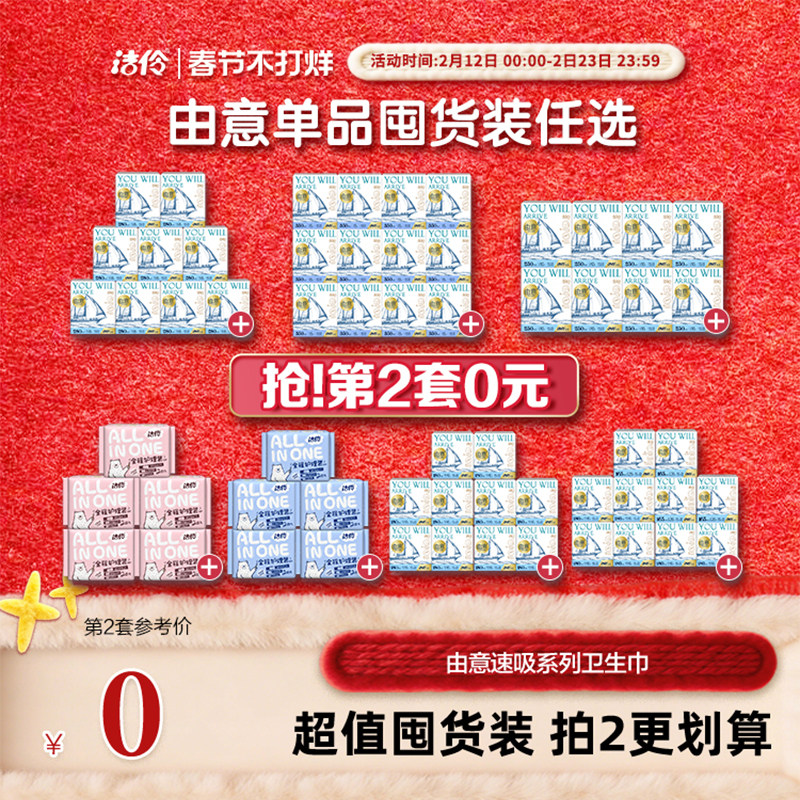 【拍2套】洁伶由意卫生巾日用夜用组合量大姨妈巾一整箱