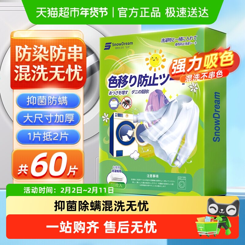 SnowDream吸色片防串色染色60片抑菌除螨洗衣色母片吸色纸