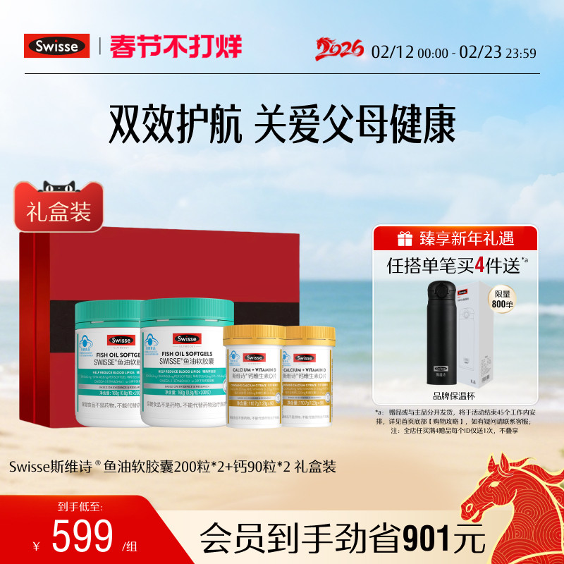 【年货礼盒】Swisse斯维诗鱼油深海鱼软胶囊omega3成人中老年正品