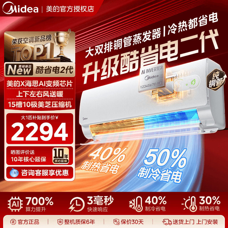 美的空调一级能效家用大1.5匹变频冷暖挂机官方2026款酷省电二代