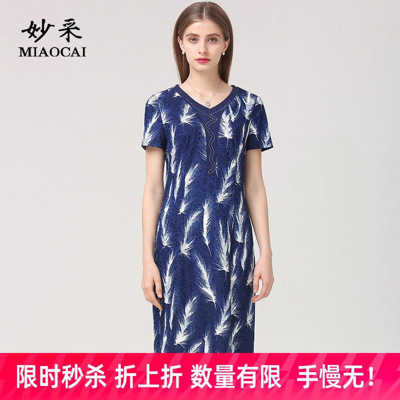 妙采旗舰店中年妈妈连衣裙女夏装V领中长款韩版洋气中老年裙子