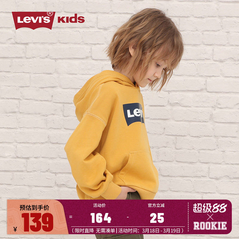 • 泡美丽»»Levis李维斯童装2026秋季新款男女童纯棉套头连帽卫衣中大童上衣