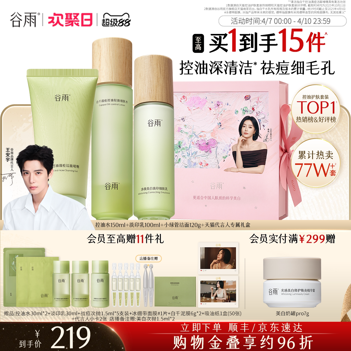 谷雨白千控油水乳套装祛痘淡化痘印收缩毛孔敏感肌油皮清爽护肤品